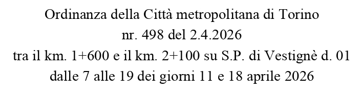 In allegato è disponibile l'Ordinanza della Città metropolitana di Torino nr. 498 del 2.4.2026.