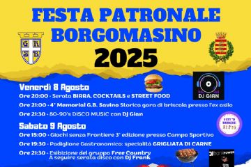 Festa patronale Borgomasino da venerdì 8 a lunedì 11 agosto 2025